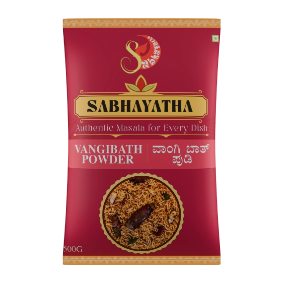 Sabhayatha Vangibath Masala Powder captures the distinct, savory essence of traditional brinjal rice from Karnataka.